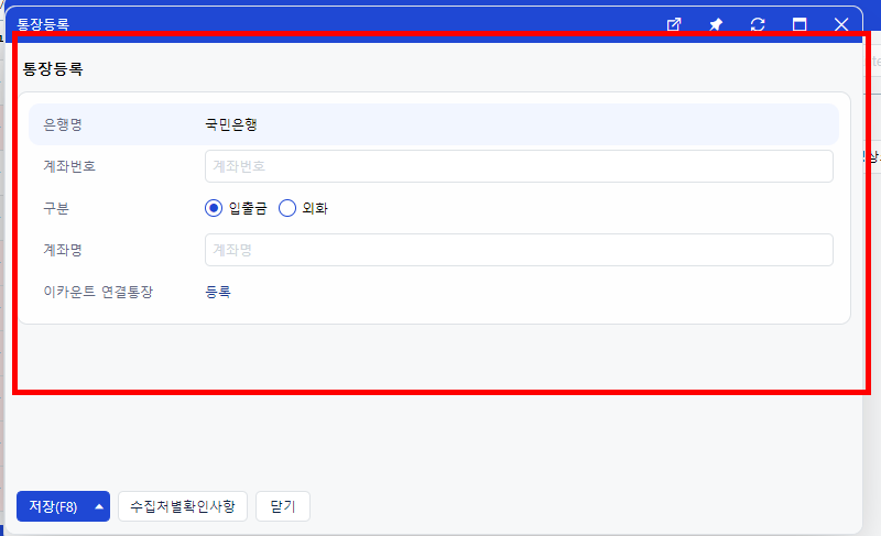 계좌등록 메뉴 등록 항목을 확인해 보겠습니다.