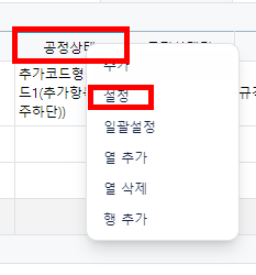 발주서현황 메뉴의 양식설정을 통하여 공정상태명을 추가해줍니다.