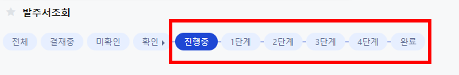 즉, 상단의 단계에 공정이 들어간다면, 현재 우리가 발주서 넣었던 제품이 어떤 단계인지 한눈에 알아볼 수 있습니다.