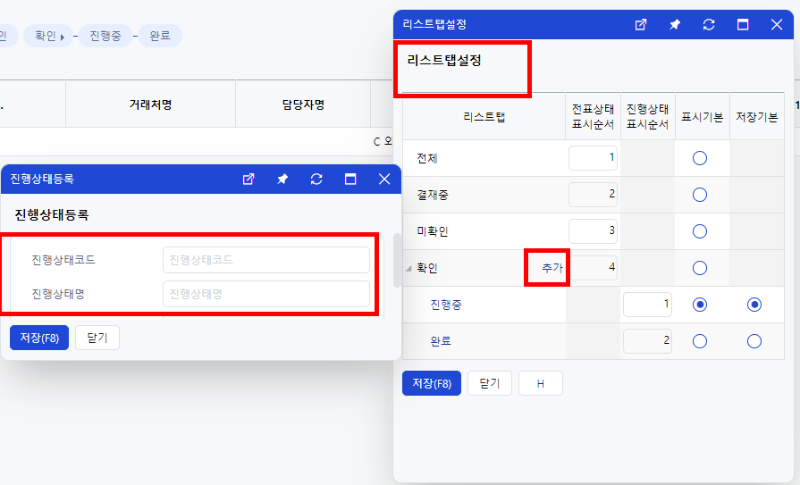 진행상태를 추가하게 되면 상단의 리스트탭이 다양하게 추가됩니다.