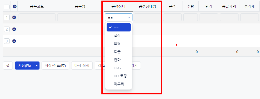 * 코드 형식을 추천드린 이유는, 각 공정의 단계를 직접 입력하면서 발생할 수 있는 오타나 번거로움을 줄이기 위해서입니다. 미리 정의된 코드값을 선택하여 처리하는 방식이 더 효율적이라고 판단했기 때문입니다.