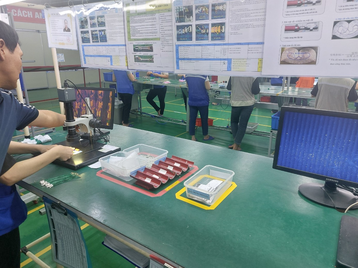 아래 사진은 해당 업체의 생산 및 공정 라인입니다. 많은 직원분들이 공정별로 다양한 작업을 진행하는 모습을 확인할 수 있었습니다.