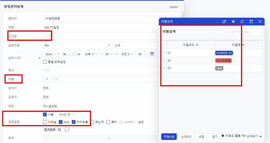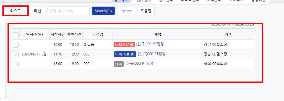 컨설팅 업체 중 PT 예약관리에 대해 일정관리 메뉴를 활용한 내용을 작성해 보겠습니다.