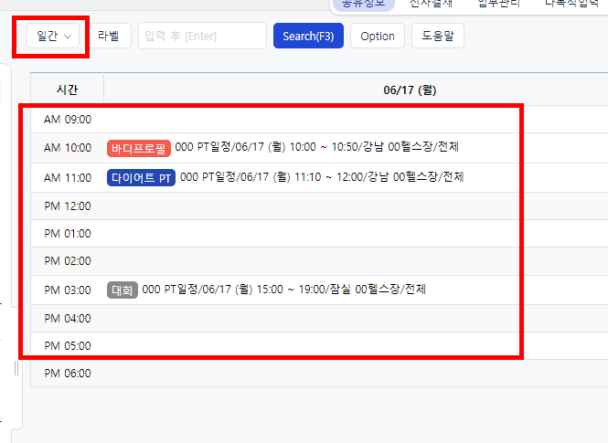 컨설팅 업체 중 PT 예약관리에 대해 일정관리 메뉴를 활용한 내용을 작성해 보겠습니다.