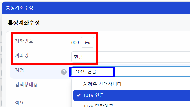 이 때, 놓치기 쉬운 부분이 있는데요, 바로 계좌등록 시 OOO현금 항목에 대한 계정 연결입니다.