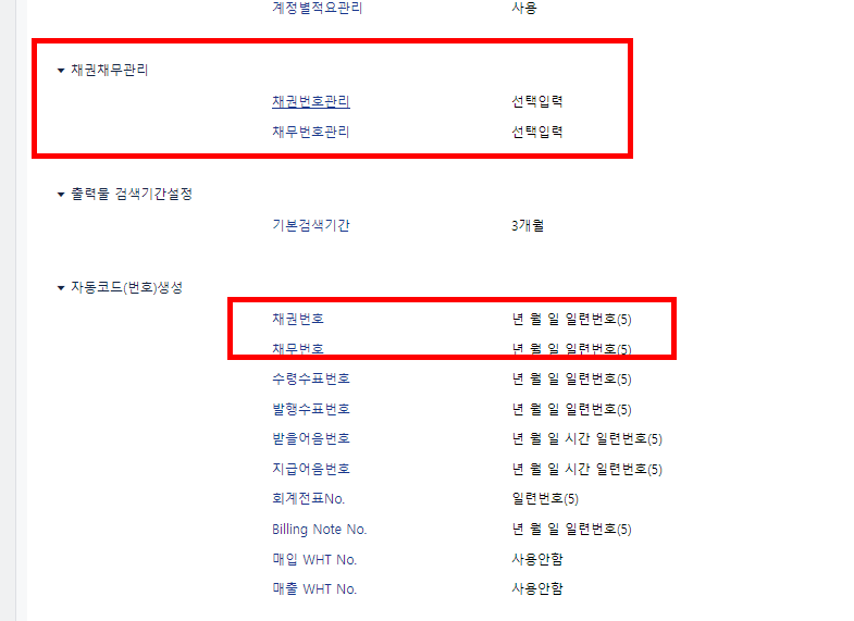필수입력 또는 선택입력으로 체크 시 매출전표, 매입전표를 입력할 때 채권번호, 만기일자를 설정할 수 있게 됩니다.