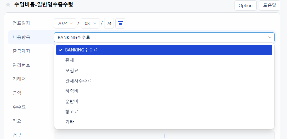 2. 출금계좌 항목에 관세사를 입력해, 우리가 관세사에 지불한 금액으로 처리할 수 있습니다.
