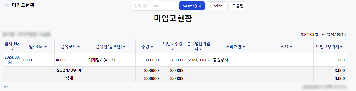 구매입력시 품목코드란에는 시리얼이 들어있지만 발주서품목코드와 구매문자형 항목간에 매핑설정을 통해 품목코드가 나타나도록 합니다. 이를 가지고 엑셀상에서 발주서-품목코드를 key값으로 활용하여 미입고 수량을 할 수 있도록 합니다.