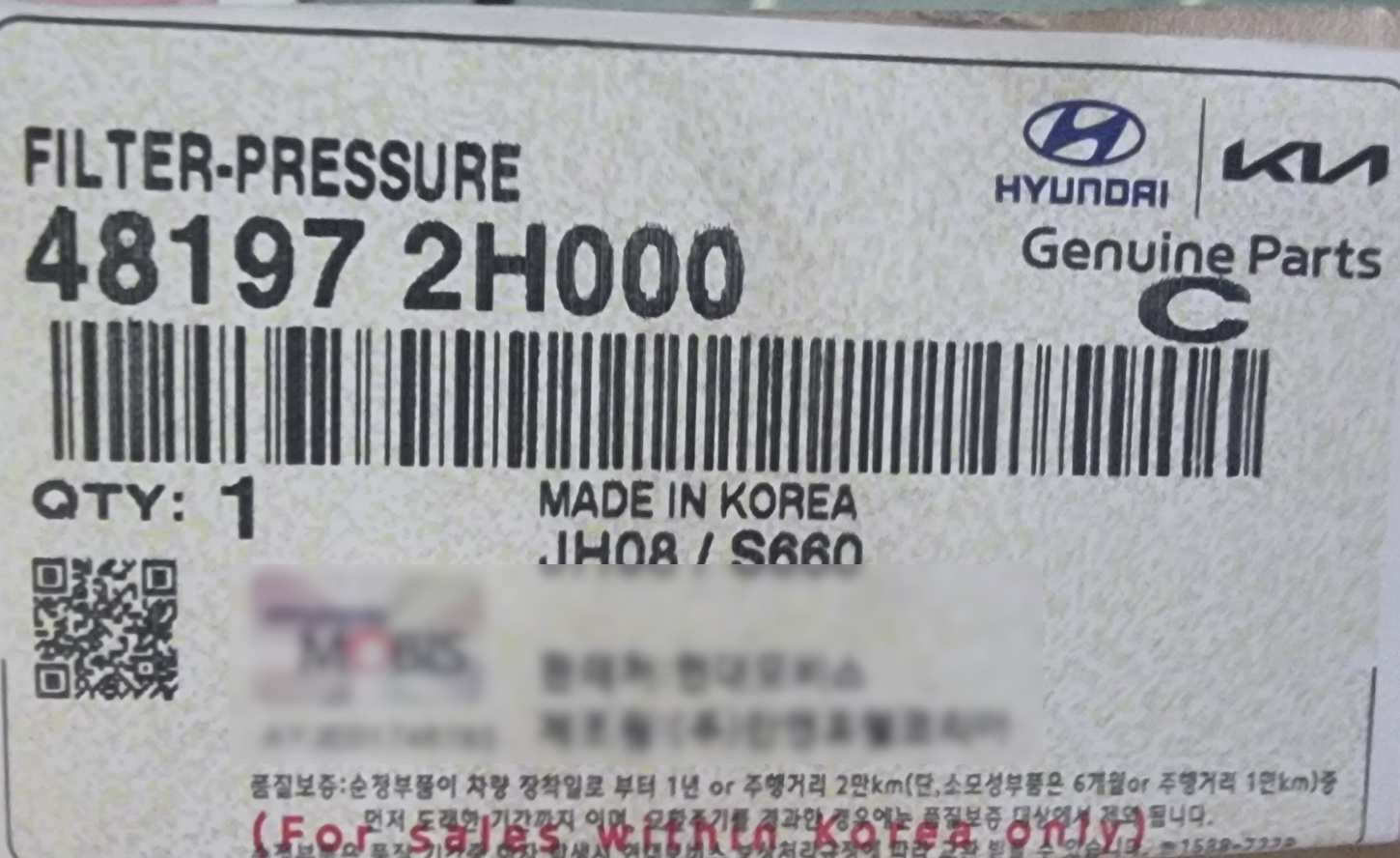 예를 들어, 위와 같은 바코드를 스캐닝하면 '481972H000 JH08'이라는 문자열이 출력됩니다. 여기서 481972H000은 품목 바코드이고, JH08은 해당 품목의 생산 버전(시리얼)입니다. 시리얼 관리가 필요 없다면, 뒤의 4자리는 불필요한 정보가 될 수 있습니다.
