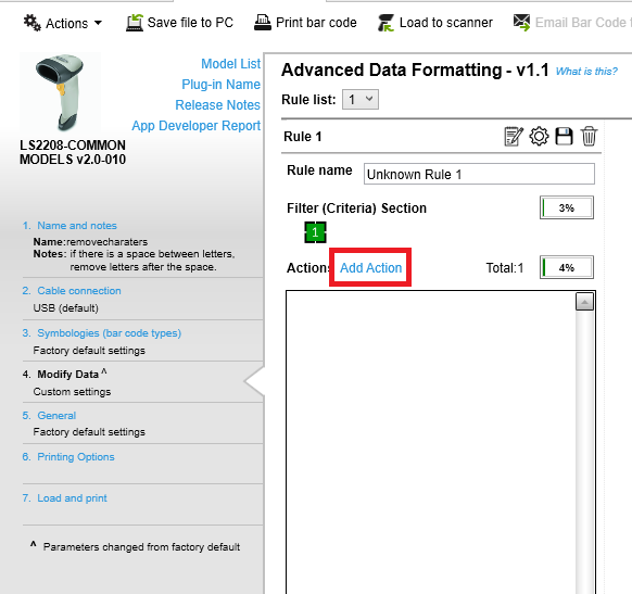 인쇄된 바코드 중 '3/4 Begin New Rule, 1.'로 시작하는 부분의 바코드를 스캐닝하면 커스터마이징된 스캐닝 규칙이 스캐너에 적용됩니다. 한 번 규칙이 적용된 스캐너는 123Scan이 설치되어 있지 않은 다른 컴퓨터나 모바일 기기에서도 동일하게 작동합니다.