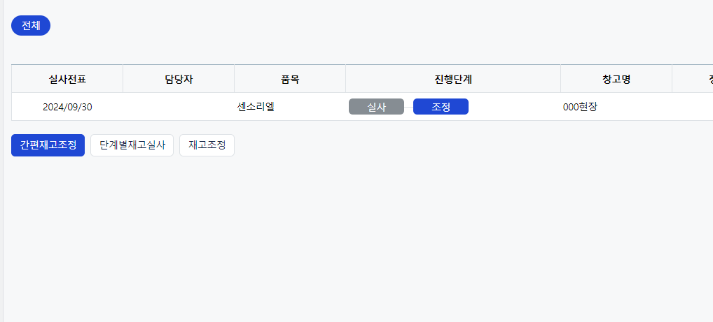 따라서, 위 조정 버튼을 클릭하여 반영을 시켜야 재고 출력물에서 확인할 수 있습니다.