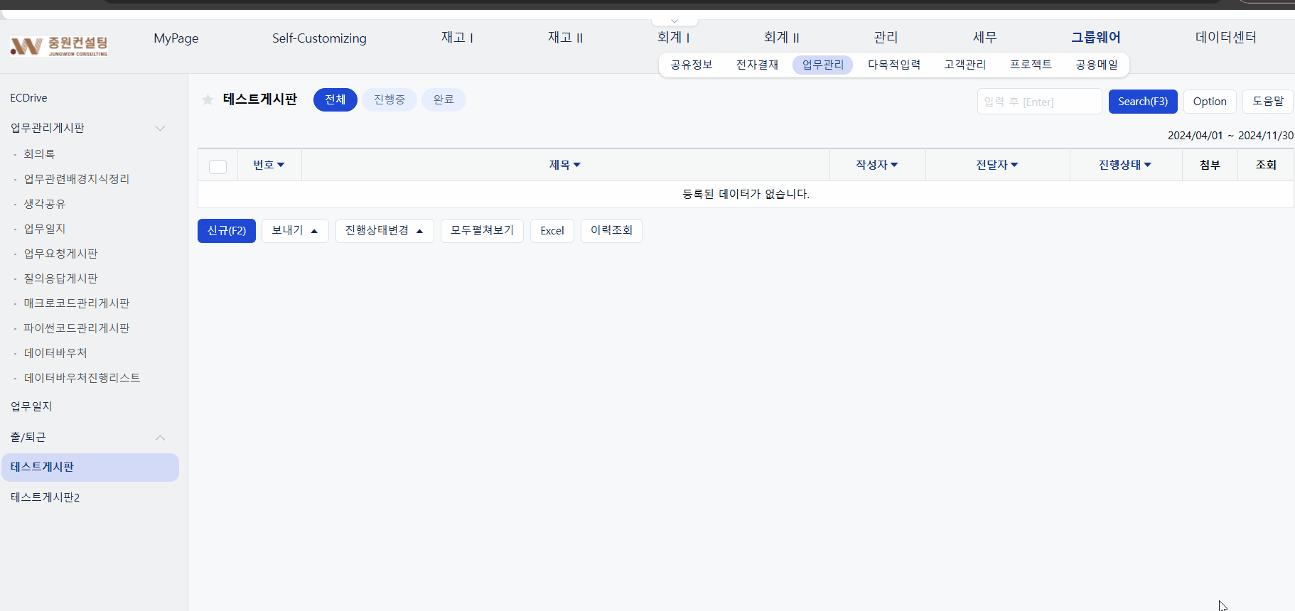 재고메뉴 리스트탭 설정부터 그룹웨어 게시판 형식까지, 프로그램의 많은 업그레이드가 진행되고 있습니다. 이카운트 활용에 생소하고 어려움을 느끼실 때, 중원컨설팅을 찾아주시면 최선을 다해 도와드릴 것입니다.