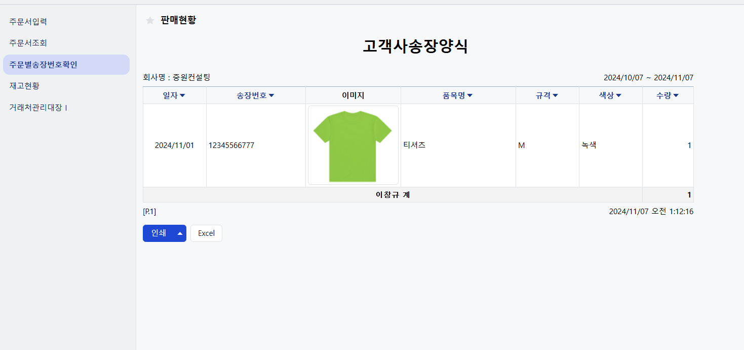 다음 해당 발주 건이 판매 처리가 되는 경우 특정 양식을 생성해 조회할 수 있습니다.