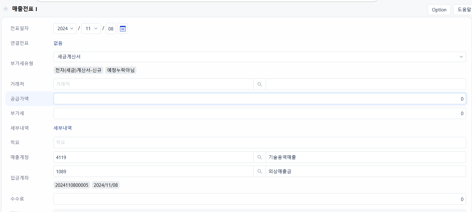물론 일반적인 회계 처리를 진행하는 경우 기본값 설정 자체만으로도 또는 직접 계정을 입력하면서 관리 할 수 있습니다.