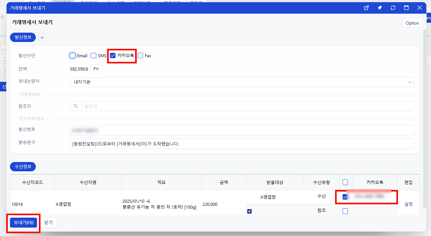 위 과정을 통하여 거래명세서를 발송하는 예시를 아래 화면에서 보여드리겠습니다.