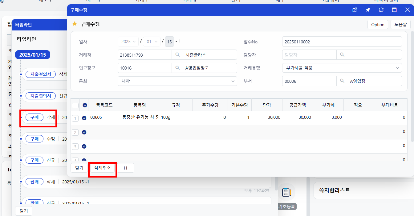 타임라인 기능 : 작업 이력 추적 및 전표 복구까지!