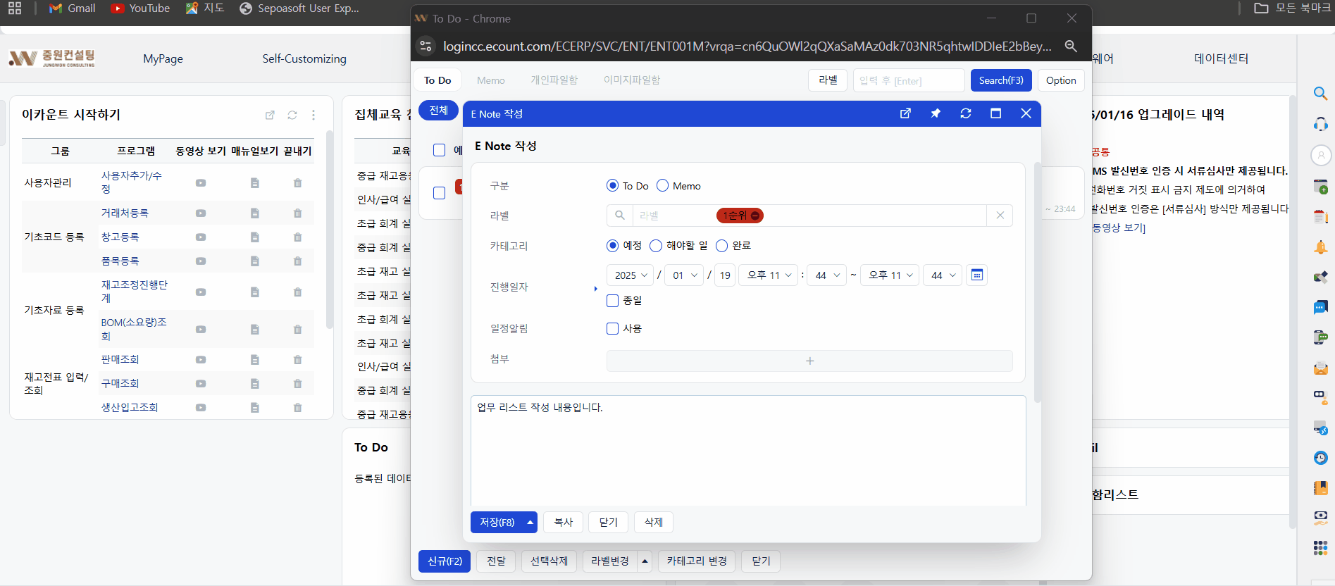 처음에는 단순해 보일 수 있지만, E Note는 ERP 활용도를 몇 배로 높여주는 핵심 도구입니다.