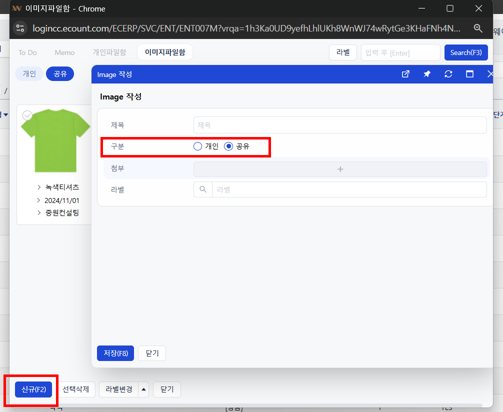 - 공유 이미지 : 동일 사업자 코드 내 다른 사용자들과 공유 가능