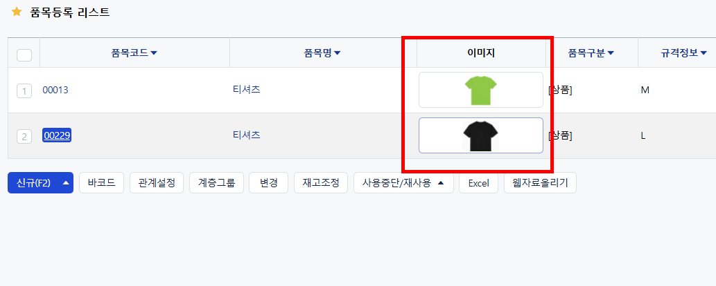 - 품목 리스트 화면에서도 이미지가 표시되도록 설정 가능
