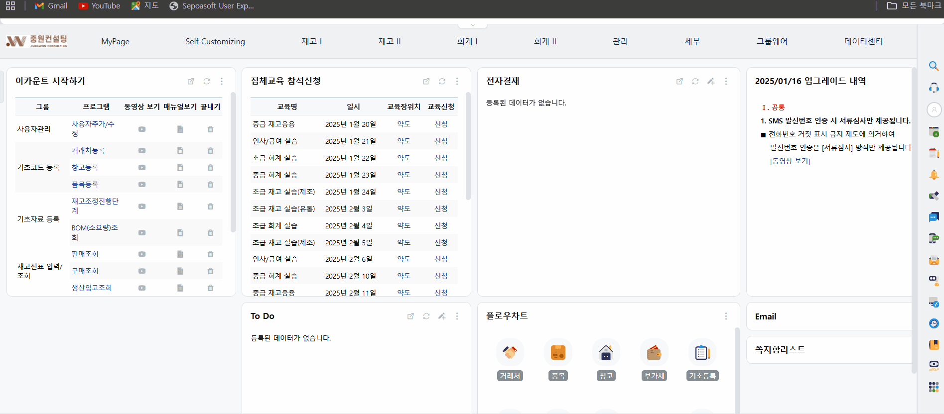 중원컨설팅은 이카운트 ERP 도입부터 커스터마이징, 기능 교육, 매뉴얼 제공까지 전문적으로 지원합니다.