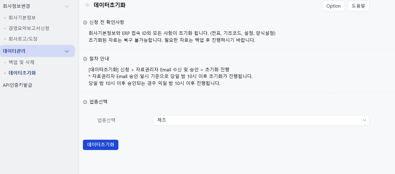 ERP 데이터를 안전하게 백업하거나 초기화하고 싶다면, 아래 메뉴를 확인하세요.