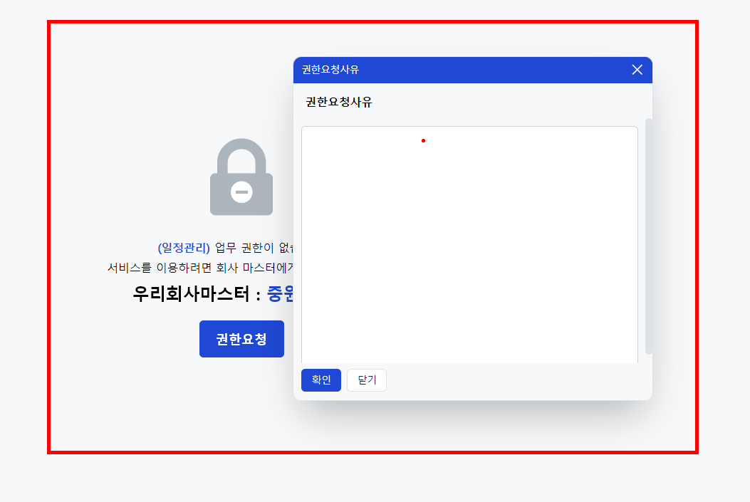 사용자가 권한이 없는 메뉴에 접근 시 [권한 요청]버튼이 나타나고, 사유를 입력해 요청을 보낼 수 있습니다.