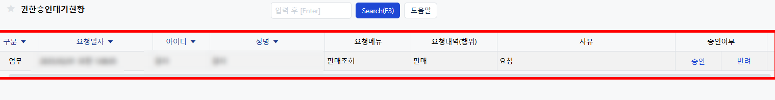 관리자는 해당 요청을 검토하여 승인/반려 여부를 결정하게 됩니다.
