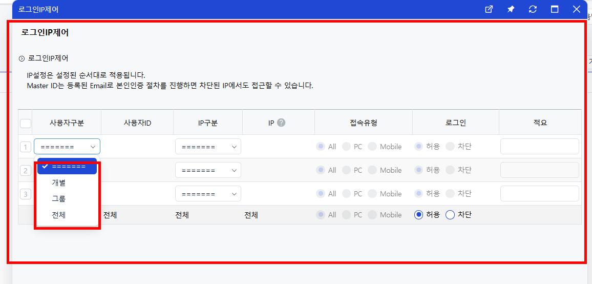 3) 로그인 IP 제어