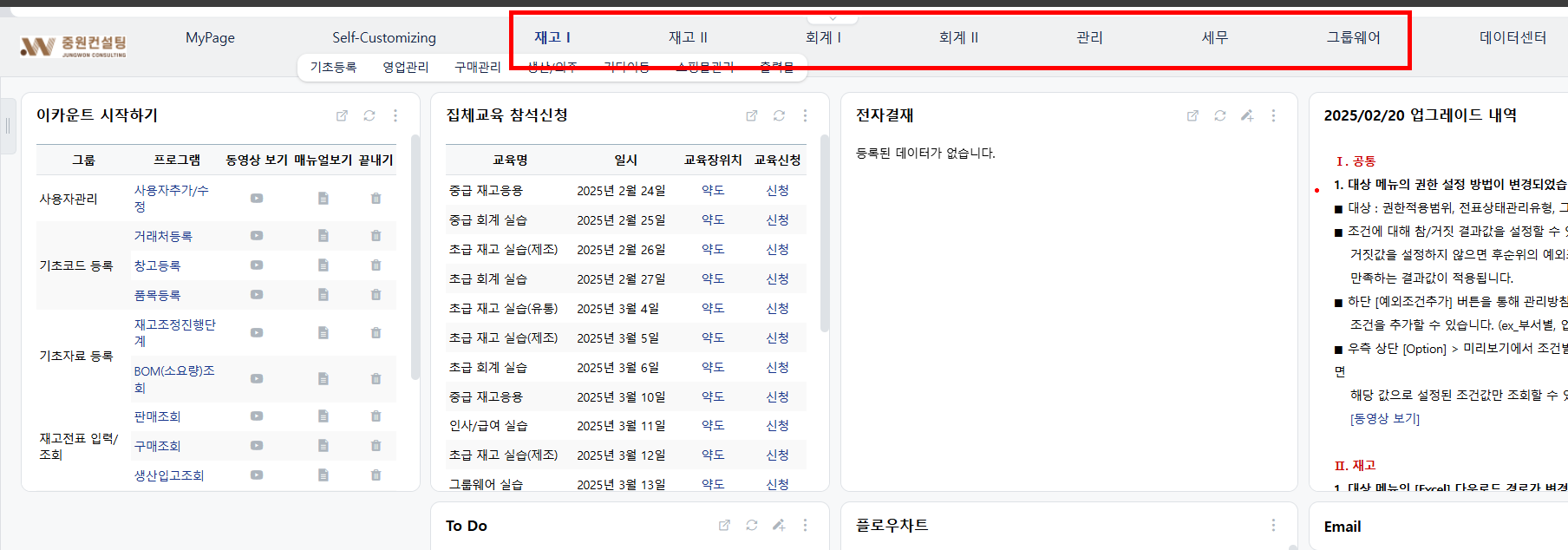 중원컨설팅은 ERP 전환, 초기 세팅, 교육까지 맞춤 지원 합니다.