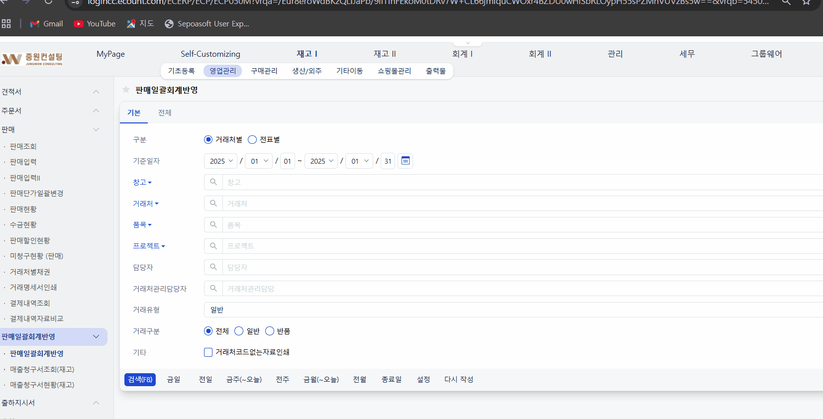 경로 : 재고Ⅰ- 영업관리 - 판매일괄회계반영