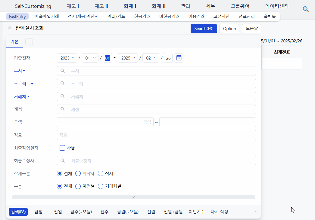 팁 : 전표 반영 시점(일자)과 보고서의 조회기간이 어긋나면 값이 다르게 보일 수 있으니, 조회기간을 넓혀 재검증하세요.