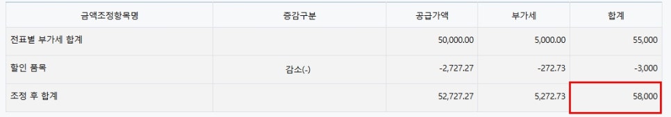 - 금액조정 항목이 명세서에 표시되어 할인 내역 확인 가능