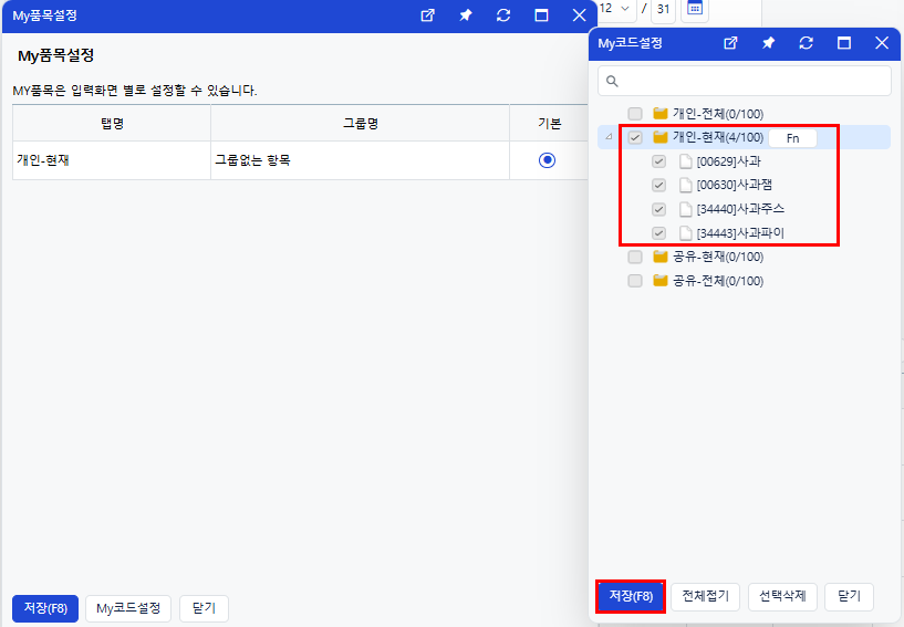 2-2. [MY품목설정] > [MY코드설정]으로 들어갑니다.