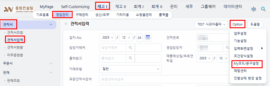 - 설정 방법 (예시: 견적서 입력)