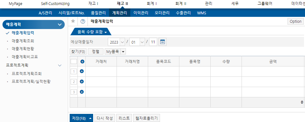 ▶ 매출계획 : 재고Ⅱ -> 계획관리 -> 매출계획 에서 입력한 수량을 의미합니다.