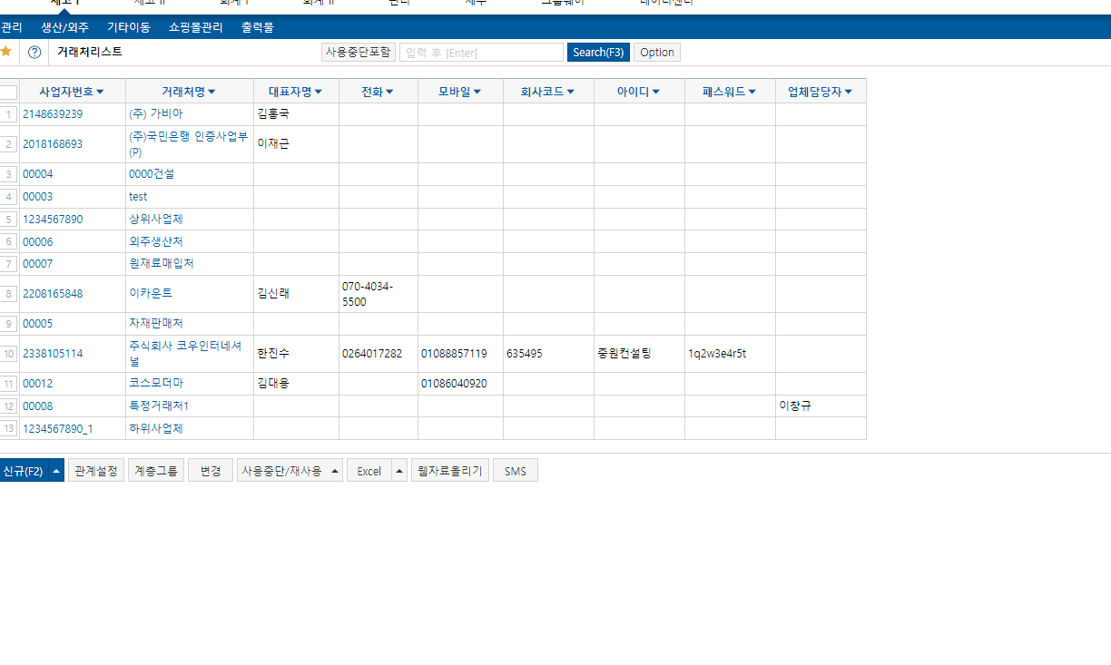 2. 사업자등록번호는 있지만 그 하위 업체(혹은 개인)이 있어서 그 하위 기준으로 매출/매입/채권/채무 관리를 해야하는 경우 : 종사업자, 대학에 속한 각 교수, 특정 인력업체에 속한 개인 등이 해당