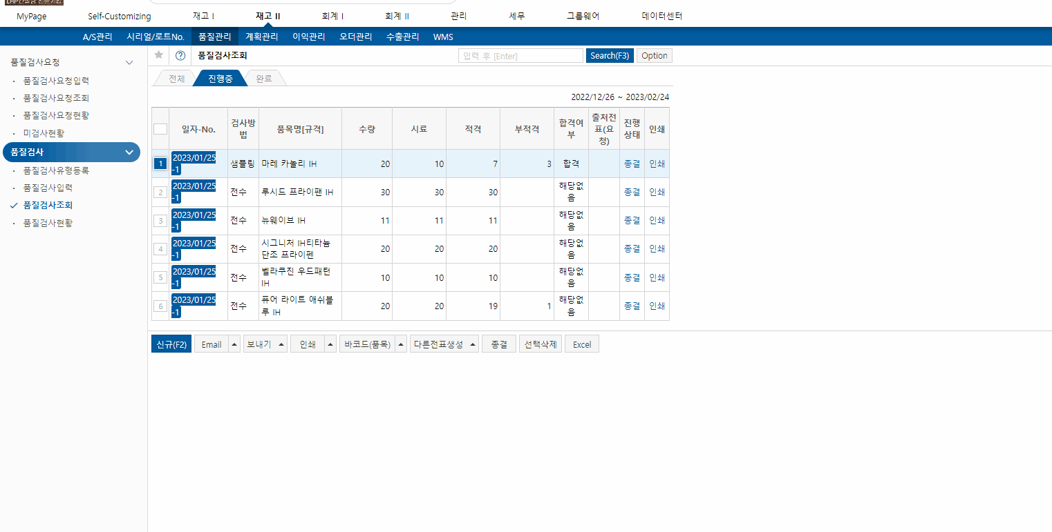 2. 품질검사요청입력 → 품질검사입력