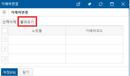 불러온 후 우측 거래처에 거래처코드를 불러옵니다.