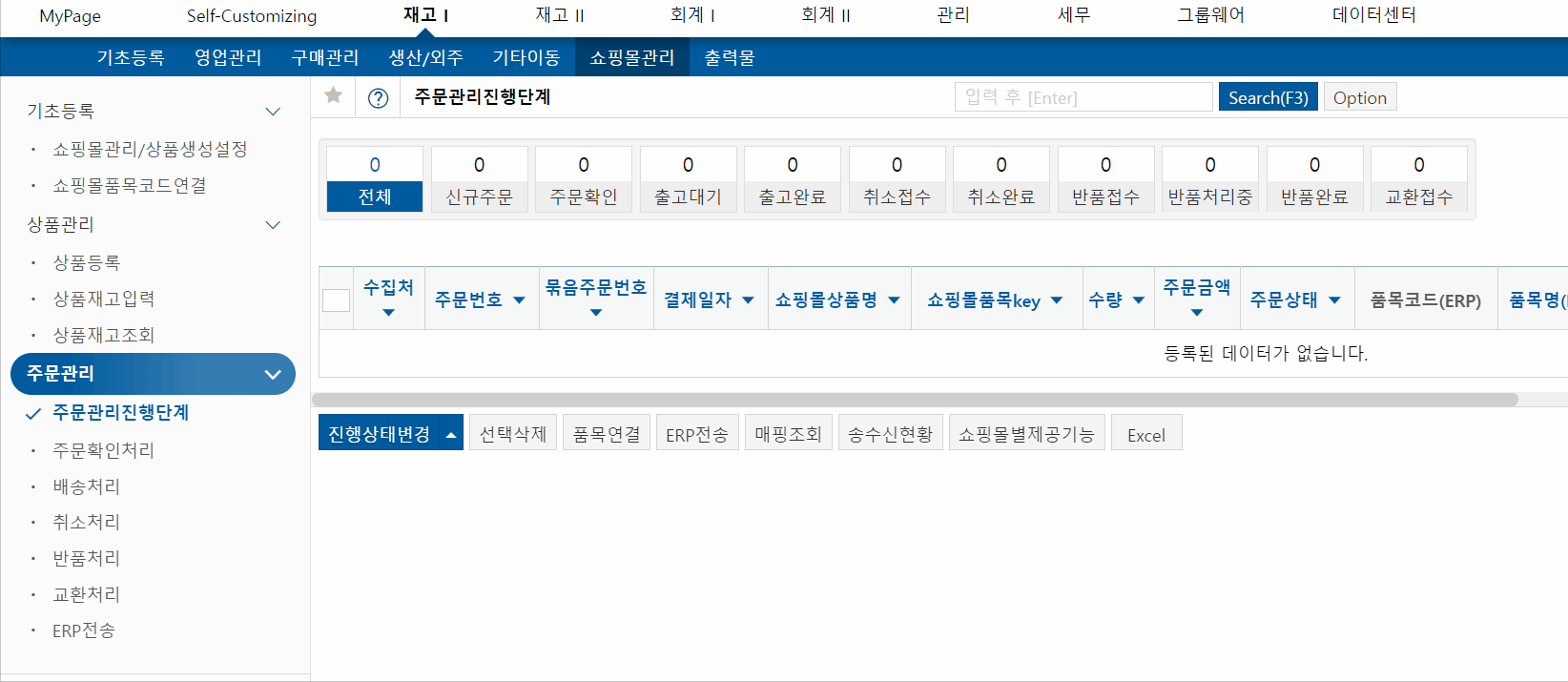 안녕하세요, 중원컨설팅입니다. 쇼핑몰관리 방식에 대한 문의는 항상 많이 받습니다. 솔직하게 말씀드리면 아직까지는 완벽하게 쇼핑몰 ~ ERP관리로까지 지 관리를 할 수 있도록 하는 솔루션은