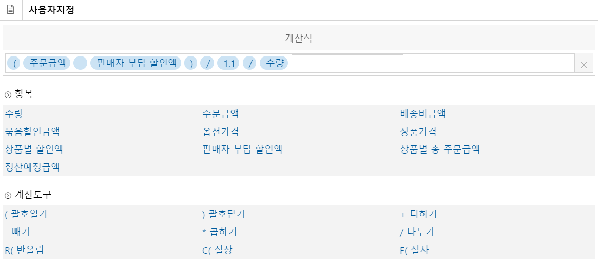 위의 항목들을 통해서만 계산이 가능하며 만약 이외 항목들의 반영이 필요한데, 이카운트에서는 보이지 않는다고 하면 해당 쇼핑몰의 정확한 단가계산은 어렵다고 보면 됩니다.