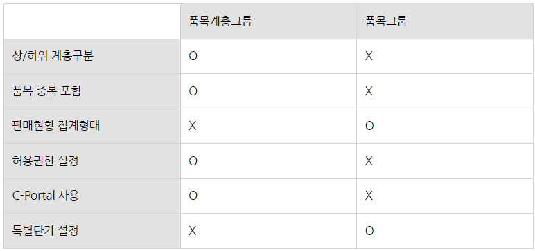 품목그룹계층과 품목그룹에 대해서 잘 비교해 보셨나요?!