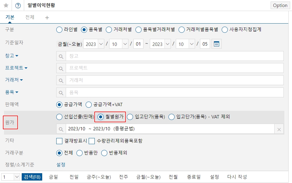 다만, 판매입력시 단가를 0원으로 입력하거나 불량처리할 때 품목대체로 처리한다면 이익률에 영향을 미칩니다.