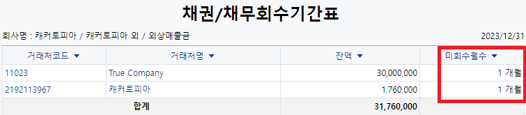1. 채권/채무회수기간표