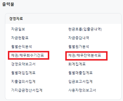 위 경로로 들어와보시면 아래와 같이 채권관련 두 개 출력물이 있습니다.