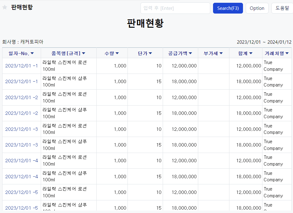 지금까지의 설명에는 이카운트프로그램에 기초코드를 올렸다면 이제 거래내역을 올려볼 차례입니다. 더존프로그램에서 내려받은 출고현황과 매치되는 메뉴는 이카운트프로그램의 판매현황입니다. 자료를 정제하여 이카운트프로그램에 업로드 해보겠습니다.