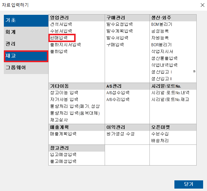 경로 : 엑셀자료올리기 기능 - 자료입력하기 - 재고 - 판매입력 클릭하여 서식을 엽니다.