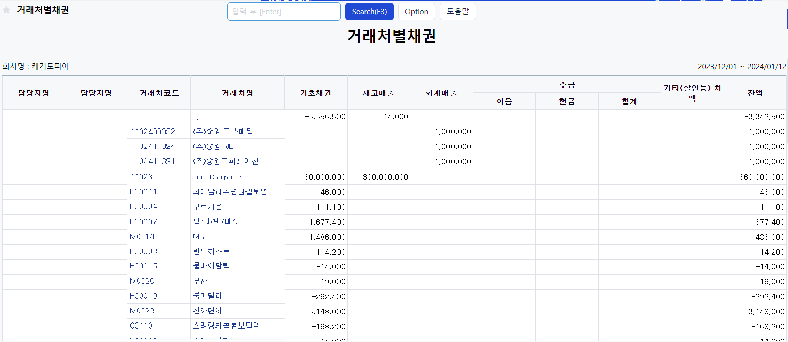 위 작업까지 진행을 해야 이카운트프로그램 채권잔액에 기준일자 기준으로 반영이 됩니다.
