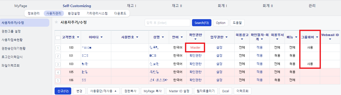 현재 '24.1월 기준으로 이카운트프로그램에서는 마스터아이디 혹은 그룹웨어 서비스를 사용중인 회사코드의 아이디들이 원격지원 기능을 사용할 수 있게 열려 있습니다. 따라서 우리 회사는 부가서비스인 그룹웨어를 사용하고 있지 않은데 내가 일반아이디라면 원격지원을 사용할 수 없는 경우가 됩니다. 다만, 그룹웨어 서비스를 사용하지 않더라도 내가 마스터 아이디라면 원격지원 기능을 사용할 수 있습니다.