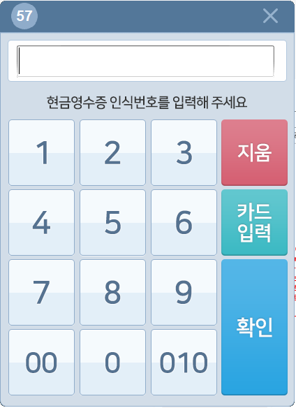 위에서 적용 클릭 시 아래와 같이 소득공제번호를 입력하라는 안내가 표시됩니다. 컴퓨터 혹은 카드단말기에 소득공제번호를 입력하고 단계를 진행합니다.