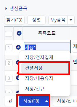 저장 버튼 마우스 오버 후 > 건별저장 체크